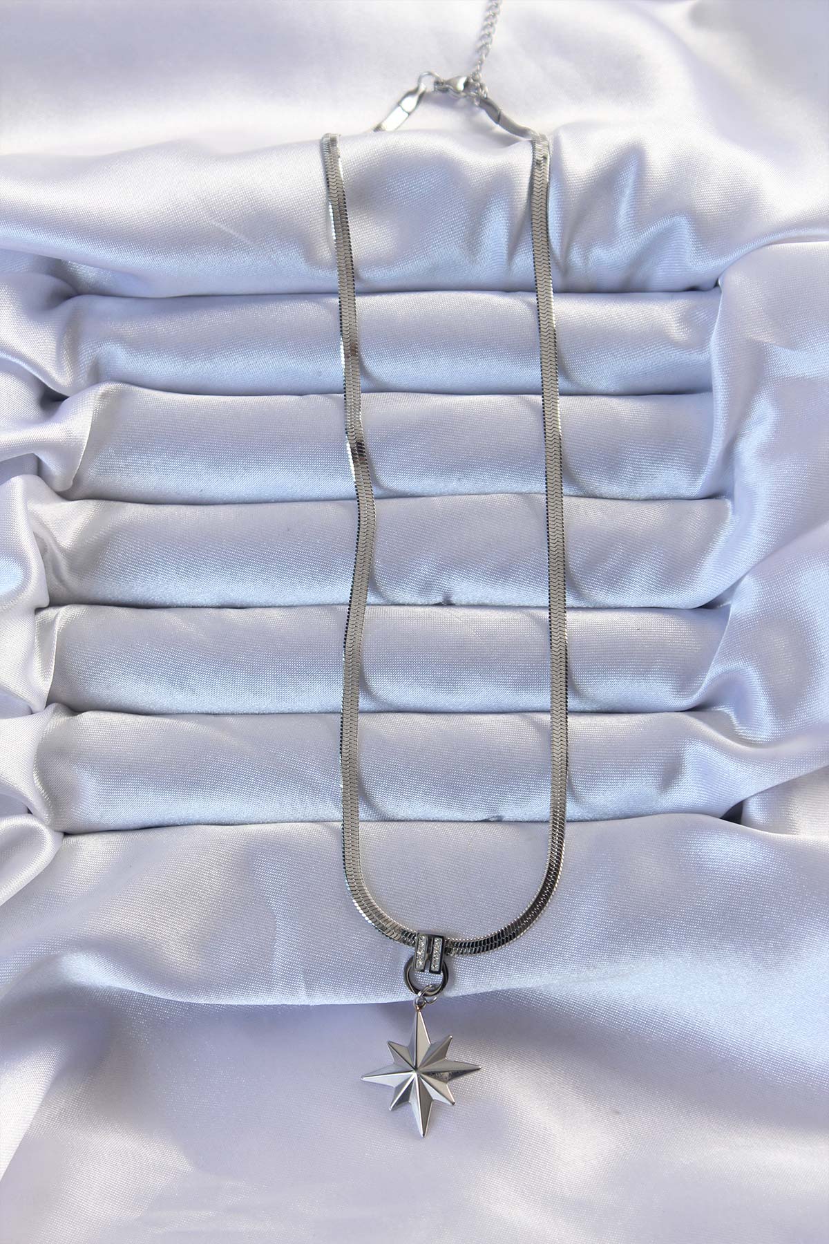 316L Çelik Gümüş Renk Zirkon Taşlı İtalyan Zincirli Kutup Yıldızı Kolye