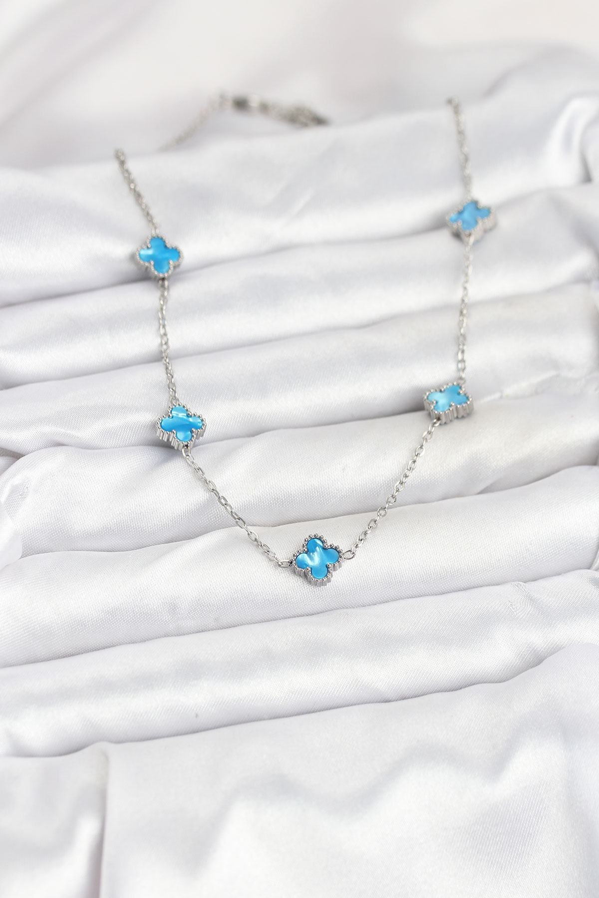 316L Çelik Zincir Gümüş Renk Buz Mavisi Baby Boy Yonca Kadın Kolye