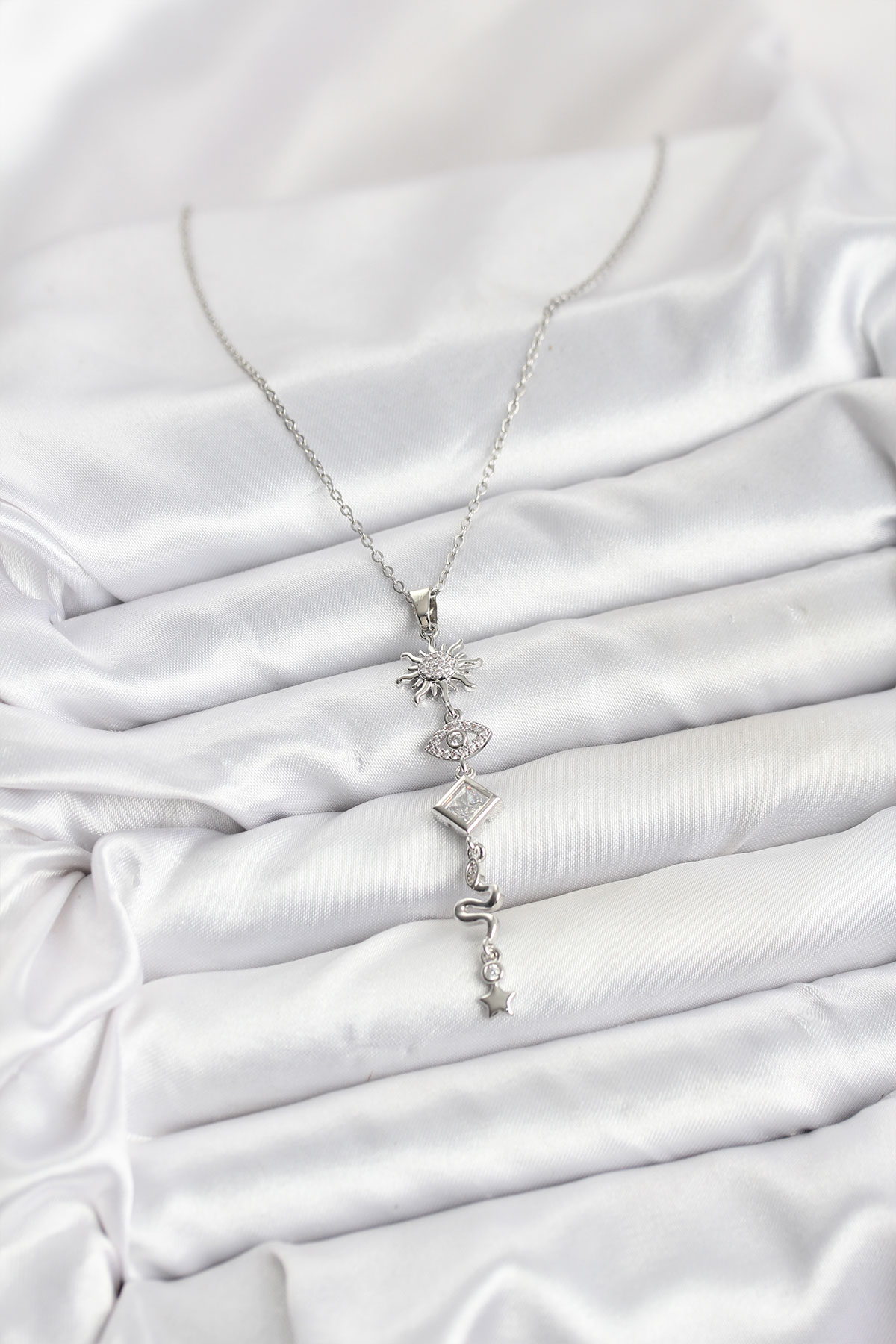 316L Çelik Zincir Gümüş Renk Güneş ve Enerji Model Kadın Y Kolye